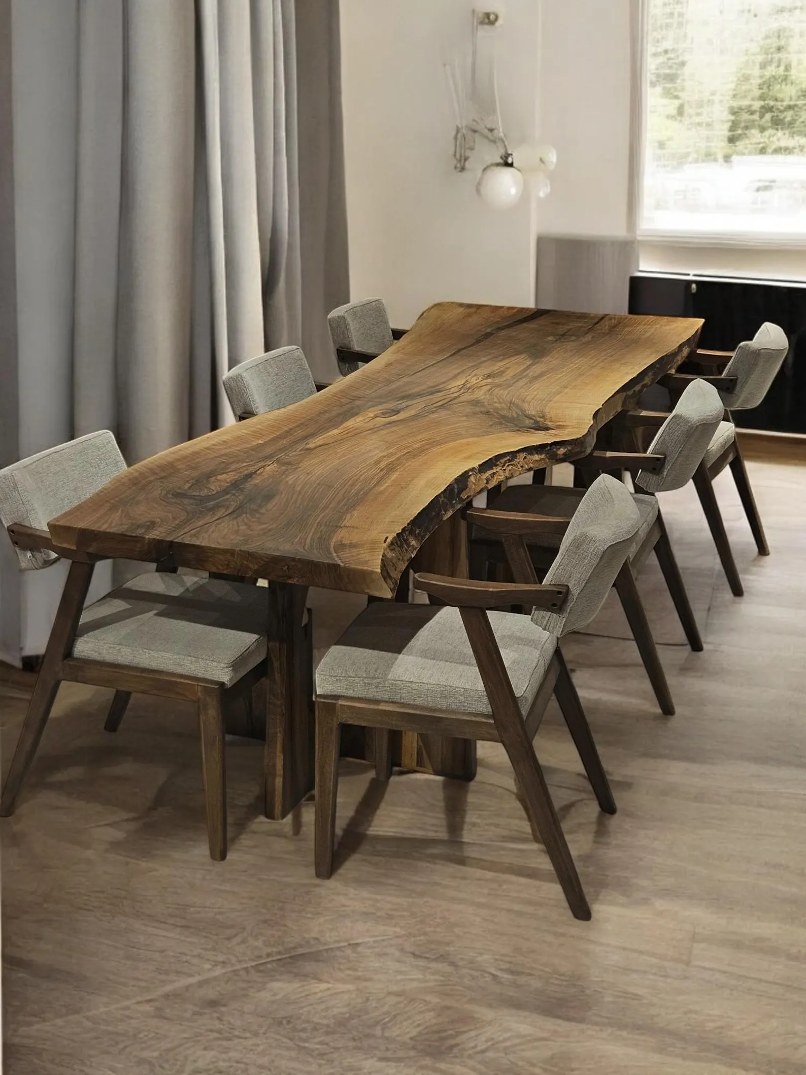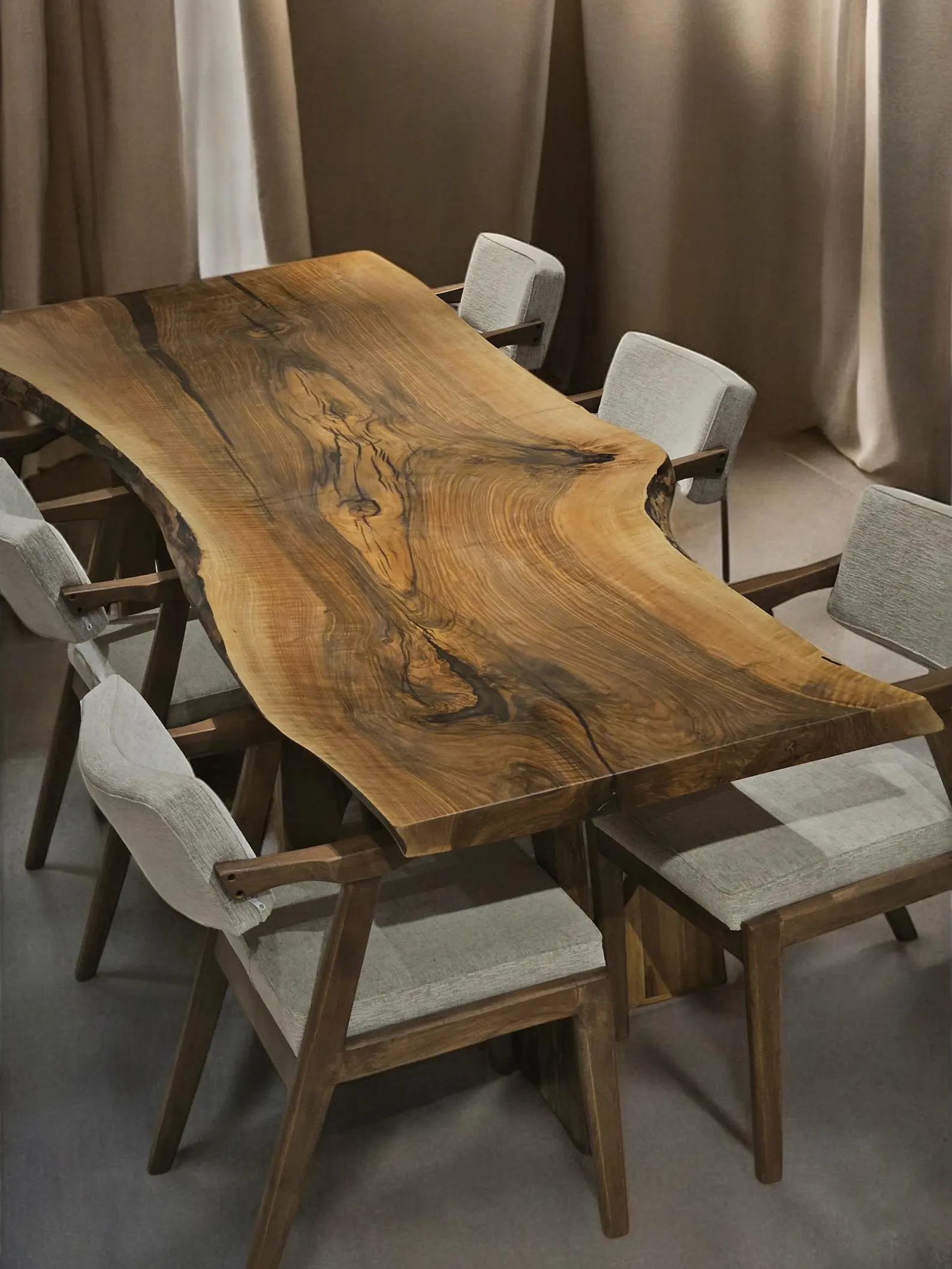 Add a touch of nature and timeless beauty to your home with our Live Edge Dining Table. Each table is carefully handcrafted from solid wood, keeping the natural edges of the tree to highlight its original shape and character. No two tables are ever the same — every piece has its own unique grain patterns, curves, and textures, making your table one of a kind.